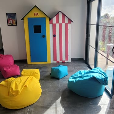 Intention : une bibliothèque colorée, dans l'esprit du mobilier et de la décoration existante