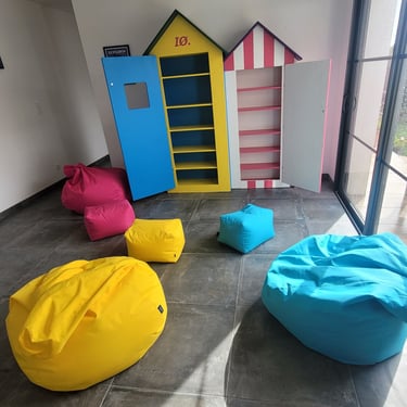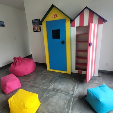 Intention : une bibliothèque colorée, dans l'esprit du mobilier et de la décoration existante