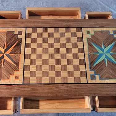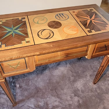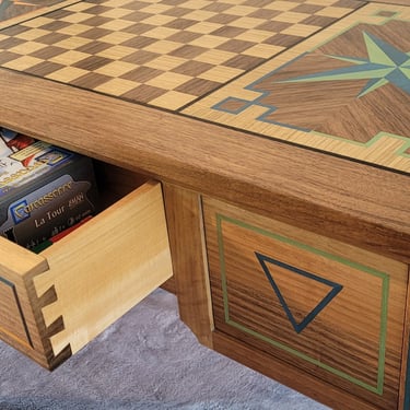 Création d'une table à jeu unique sur le thème des 4 éléments en noyer massif