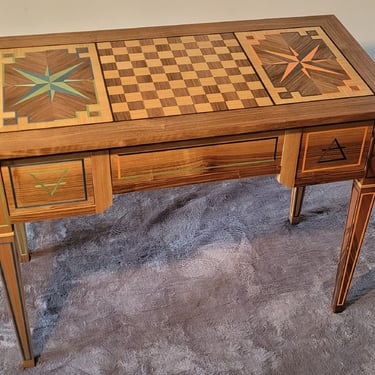 Intention : concevoir un meuble d'exception "à l'ancienne" avec tiroirs cachés, plateau amovible, frisage et marqueterie